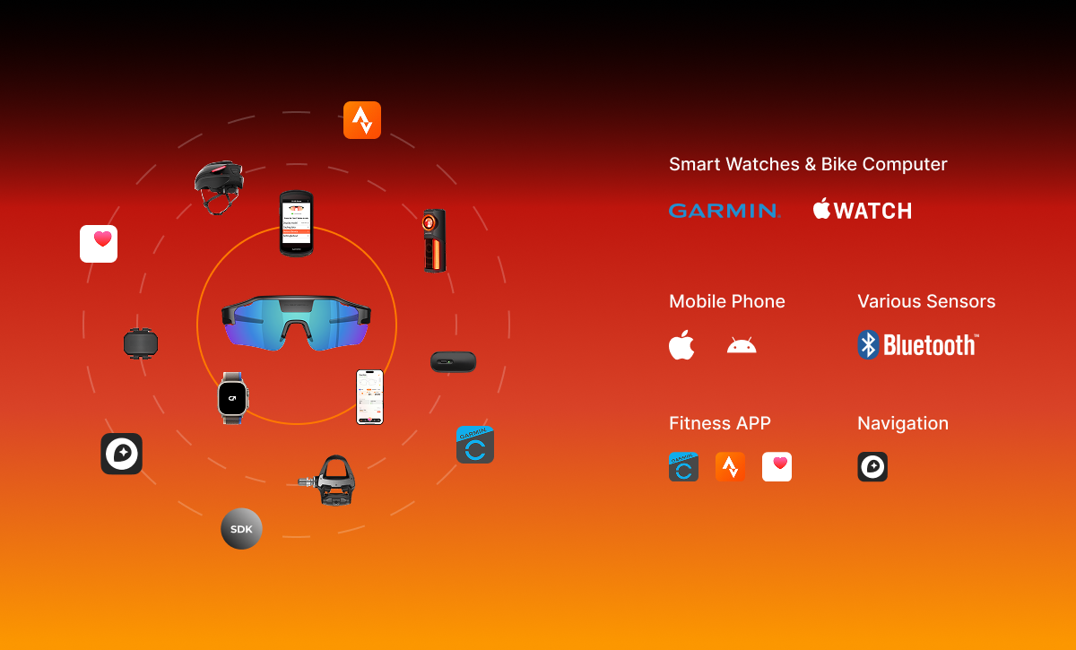ZENITH can connect to one primary device at a time—your smartphone, bike computer, or smartwatch—via Bluetooth, and then mirror the key training data from that device into your HUD.